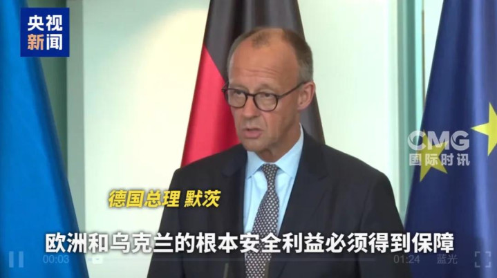 德国总理默茨在与乌克兰总统泽连斯基的联合新闻发布会上表示,欧洲希望特朗普与普京在本月15日的会晤取得成功,但必须考虑欧洲安全和乌克兰的利益。